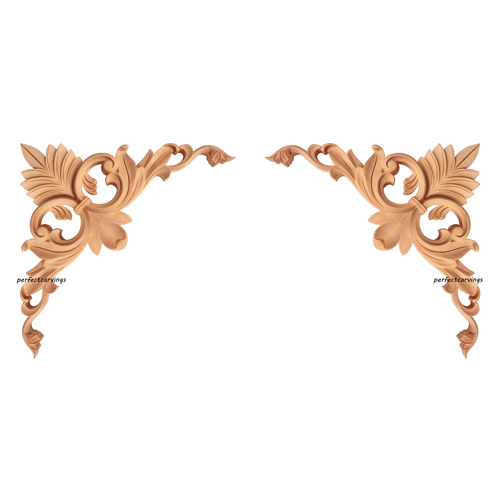 PAIR of Elegant Leaf Scroll Carved Wood Corner Appliques for Panels, Available in 3 Sizes
