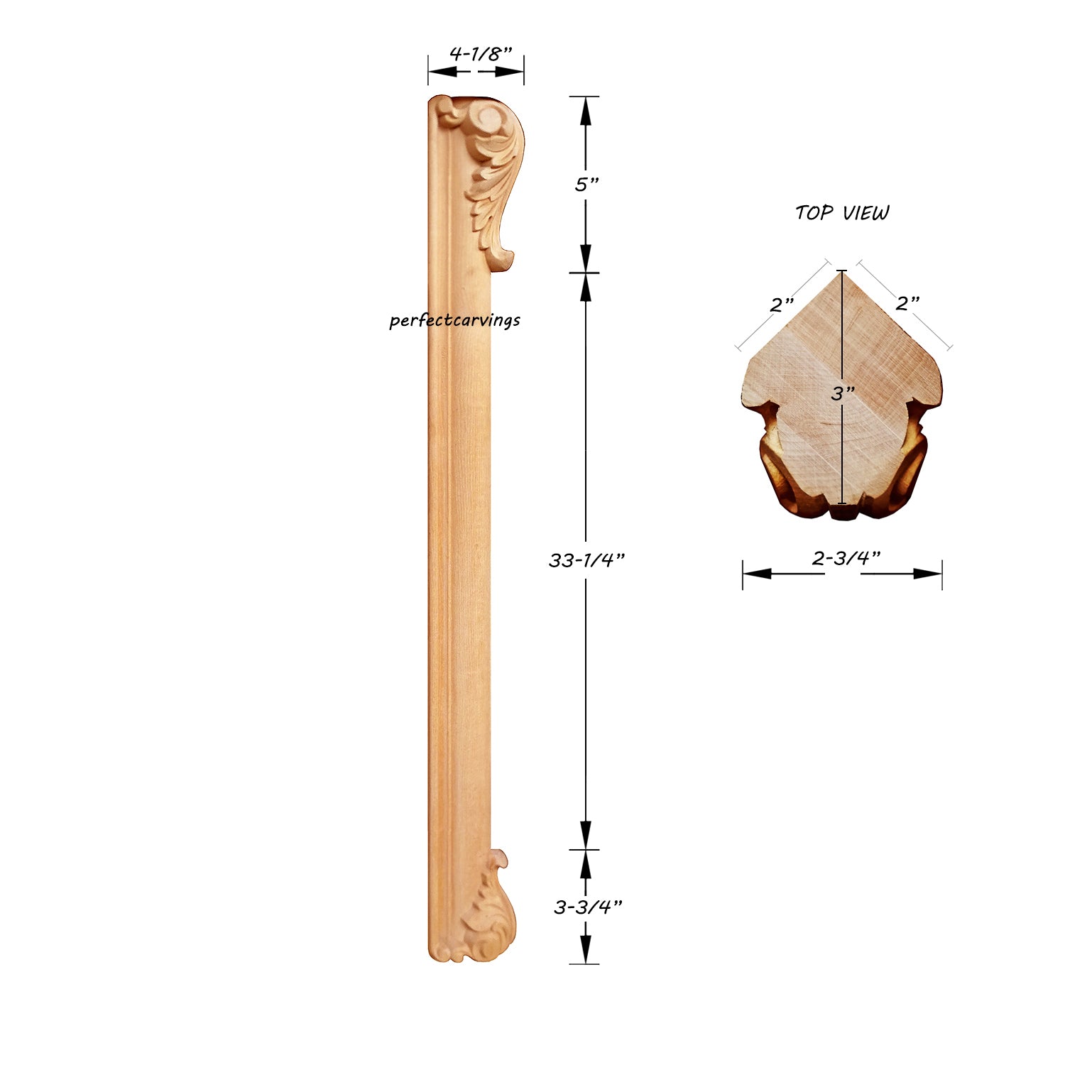 Elegant Curved Acanthus Carved 42"H Corner Posts